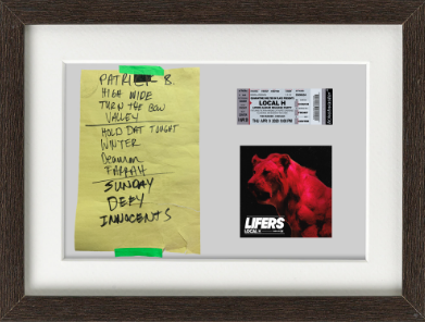 You asked for it — you got it. A poster of a frame containing various memorabilia from the LIFERS album release show that you watched from your couch. Ahhh... the new normal.